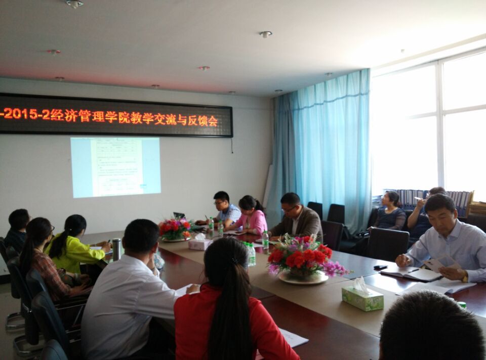 2015年5月27日13:00-14:20在五教402召开了太阳成城集团2014-2015学年第二学期教学交流和反馈会,全院教职员工参加,会议由学院院长助理刘楠主持。
