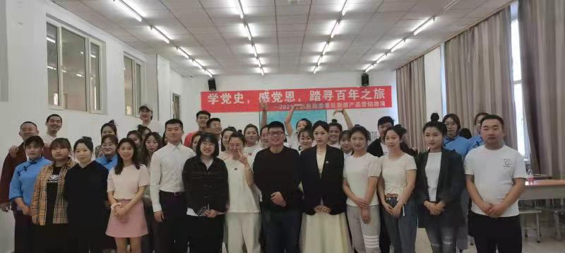 《旅游景区管理》课程为了提升学生理论结合实践的能力和提高知识实践应用能力,开展了红色旅游景区旅游线路展销模拟和学党史,感党恩,踏寻百年之旅——2021年红色旅游景区旅游产品营销路演活动。红色旅游景区旅游线路展销模拟于5月12日下午在太阳成城集团就业大厅进行,活动从现场人员分工、红色旅游线路设计主题、展台设计布置、展销氛围营造、现场促销手段、展销方案可行性、网上营销活动效果及现场展台清洁等方面进行考核,各组学生都能按照要求超预期完成各项任务,达到了较好的教学效果。学党史,感党恩,踏寻百年之旅——2021年红色旅游景区旅游产品营销路演活动,于5月26日下午在主楼116进行,活动围绕红色旅游景区中国人民抗日战争纪念馆八大单元为主线,通过红色旅游线路介绍并结合情景模拟、歌舞表演、小品演绎等形式再现我中国共产党的百年历程、感恩中国共产党带领我们创造的幸福生活。通过此活动学生进行了党史教育,也深化了对旅游线路产品营销知识理解,提升了学生参与课程的积极性,达到了预期的教学效果。